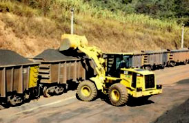 CARGA DE MINÉRIO – A operação da Engine feita no pátio ferroviário da Modal Terminal de Granéis, em Itaúna (MG), contratada pelo grupo J. Mendes de Mineração, inclui carregamento de composição ferroviária, desdobramento e empilhamento da pilha de minério, disponibilização de apontadores para orientação quanto ao local para descarga de minério, manutenção das pistas de trânsito das carretas para acesso às pilhas, mantendo-as em condições normais de tráfego.